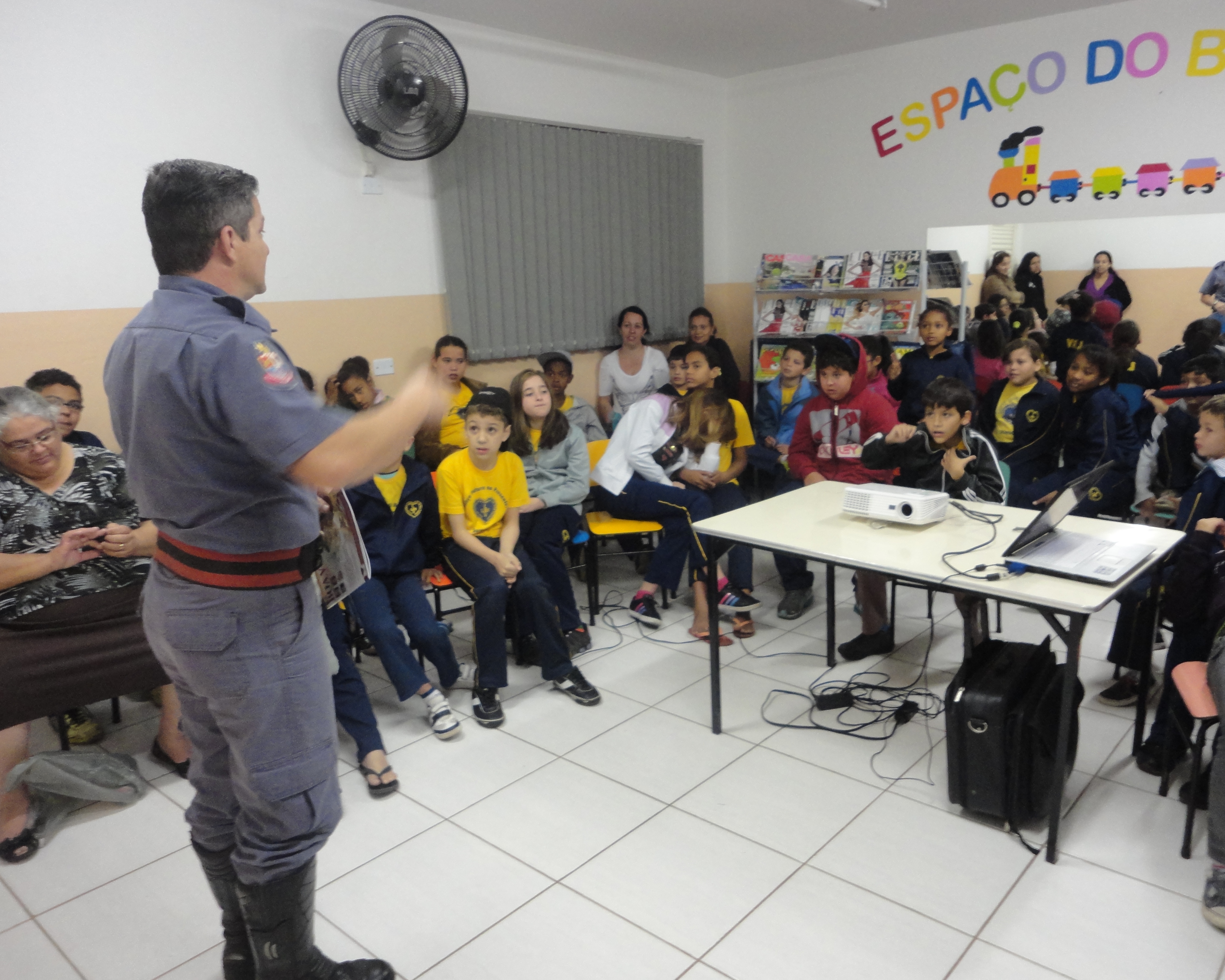 O soldado Rogério Rosa conduziu a atividade, respondendo dúvidas e apresentando uma série de ocorrências que podem causar danos aos pequenos. Em seguida, o palestrante listou dicas que favorecem o bem-estar dos atendidos e de seus familiares.