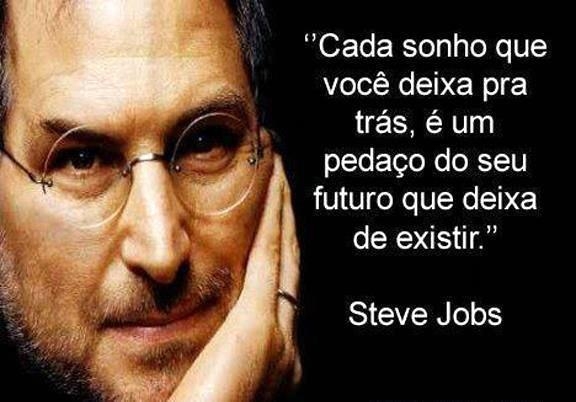 “Seu trabalho vai ocupar grande parte de sua vida, a única forma de estar realmente satisfeito com ele é fazer o que acredites ser um grande trabalho. E a única forma de fazer um trabalho genial é amar o que você faz. Se você ainda não o encontrou, continue procurando, nunca se detenha. Igualmente como todos os assuntos do coração, você saberá quando o encontrares. E, como qualquer grande relação, somente ficará melhor e melhor com o passar dos anos. Então, continue a busca até que o encontres, nunca te detenhas.”
